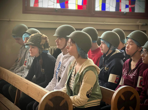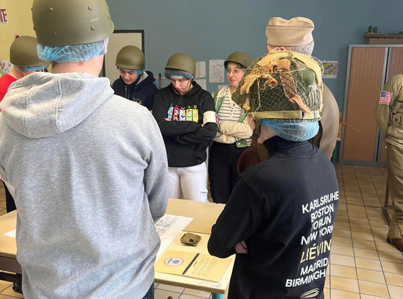 L'association accompagne les élèves, notamment à travers une intervention pédagogique marquante de Bernard secrétaire de l'association "Son Histoire, mes émotions", vêtu de l'uniforme canadien, pour leur faire vivre les événements de 1944 - 45.